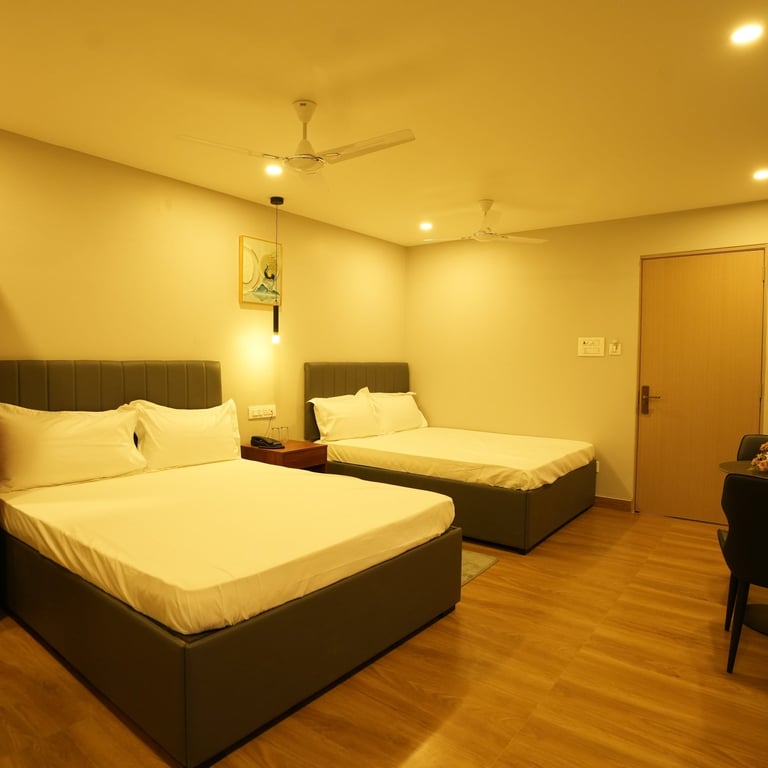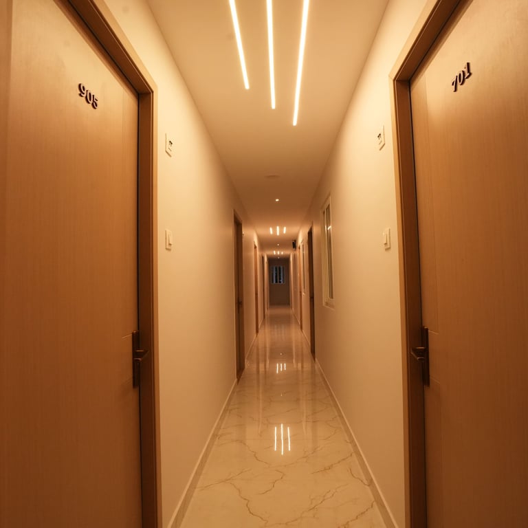 This design project was tailored for a bustling hotel nestled in the vibrant heart of Chennai, on Greams Road. Our primary objective was to craft intimate, resilient, and opulent spaces. Recognizing that many guests opt for extended stays, we meticulously selected materials and color schemes to facilitate easy maintenance for our client. By prioritizing compactness, durability, and luxury, we aimed to provide a seamless experience for both guests and management alike.